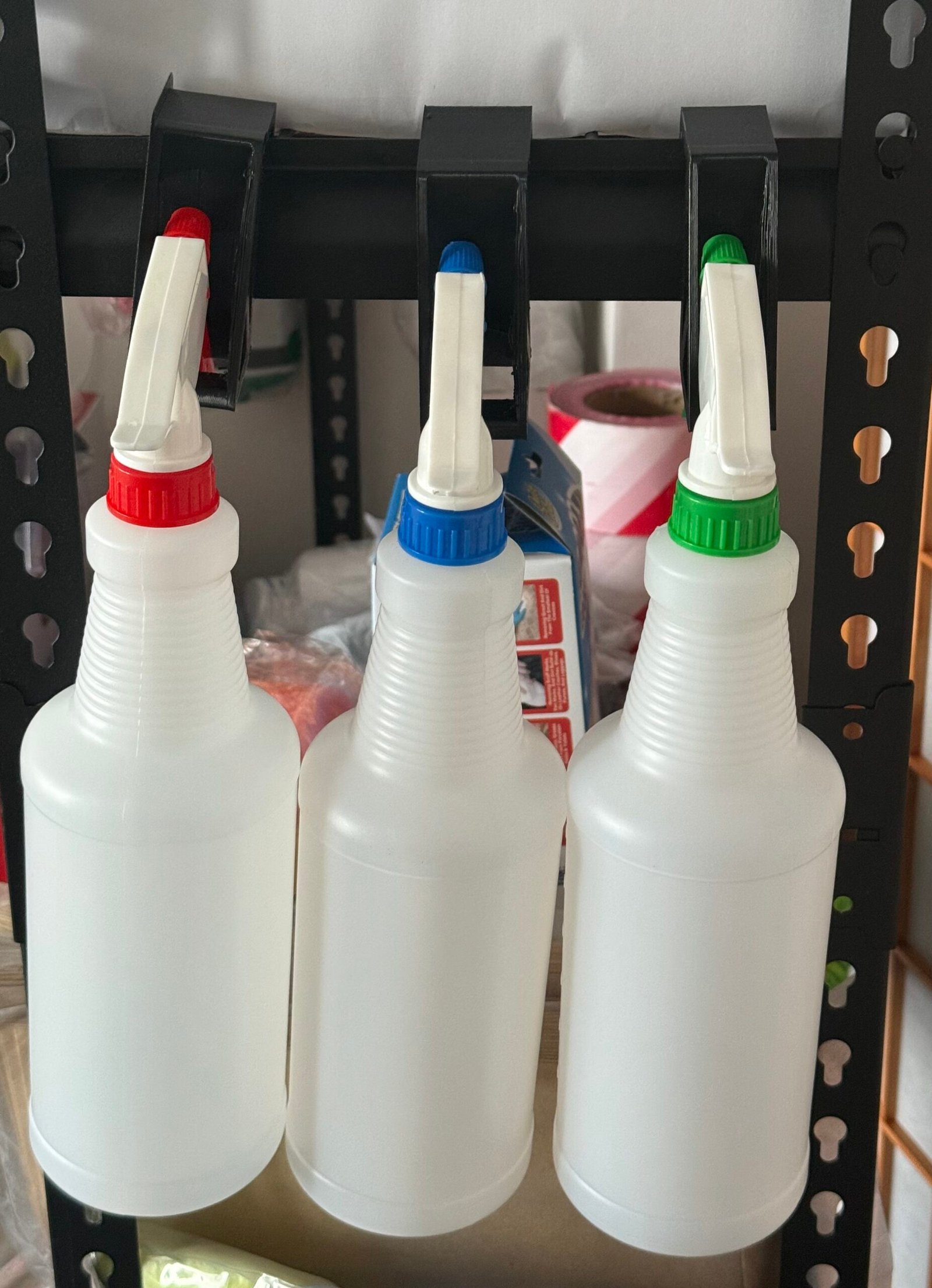 2. Trigger Hanger Racks: These are simpler strips or rails with cutouts where the spray trigger slots into, allowing the bottle to hang freely.3D Printed Spray Bottle Holders